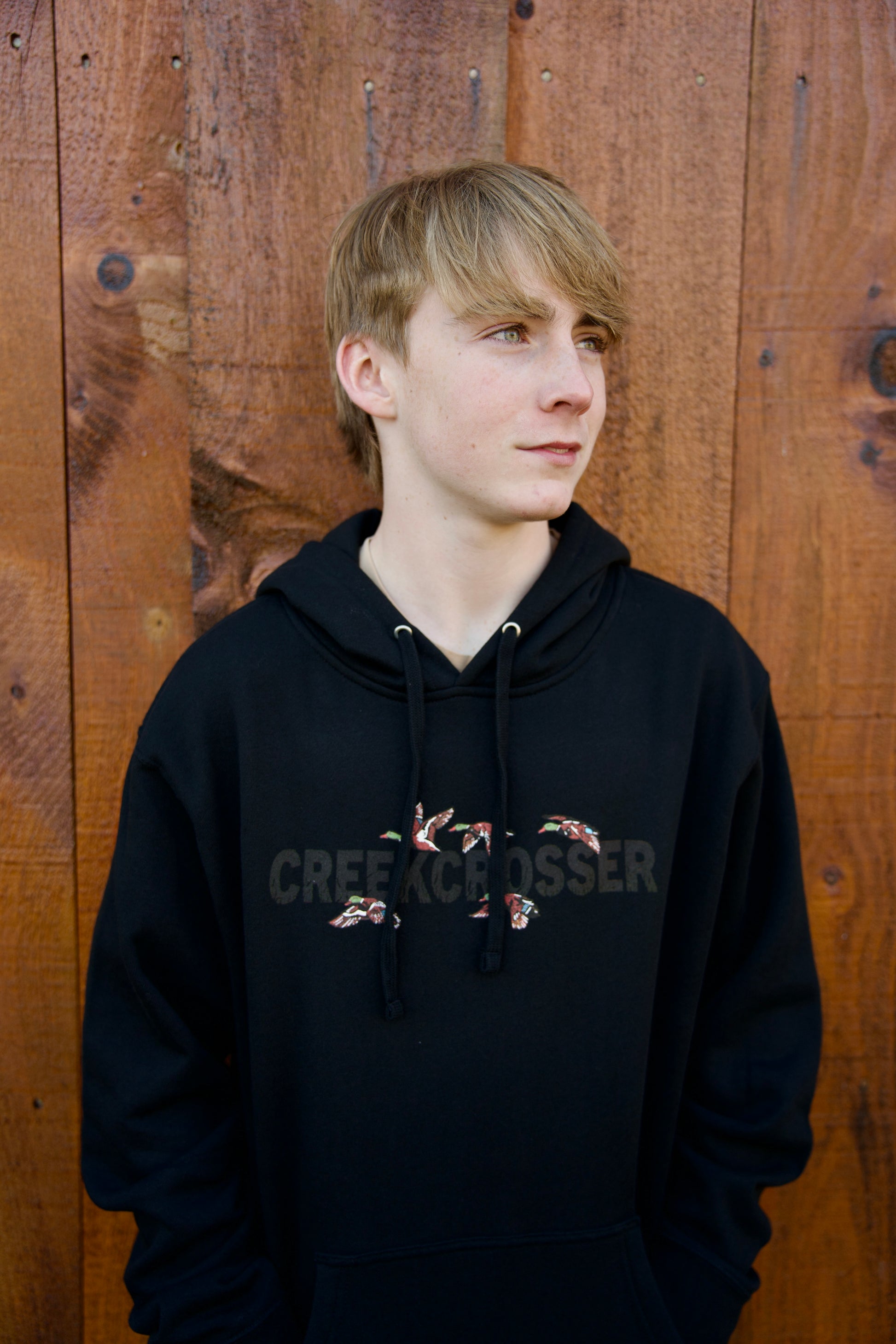 Bring the flyway with you wherever you go in the CreekCrosser Duck Hoodie. Designed for duck hunters and waterfowl addicts, this hoodie features a clean CreekCrosser logo with five detailed mallards cutting across the chest, capturing the energy and motion of birds working the decoys at first light.