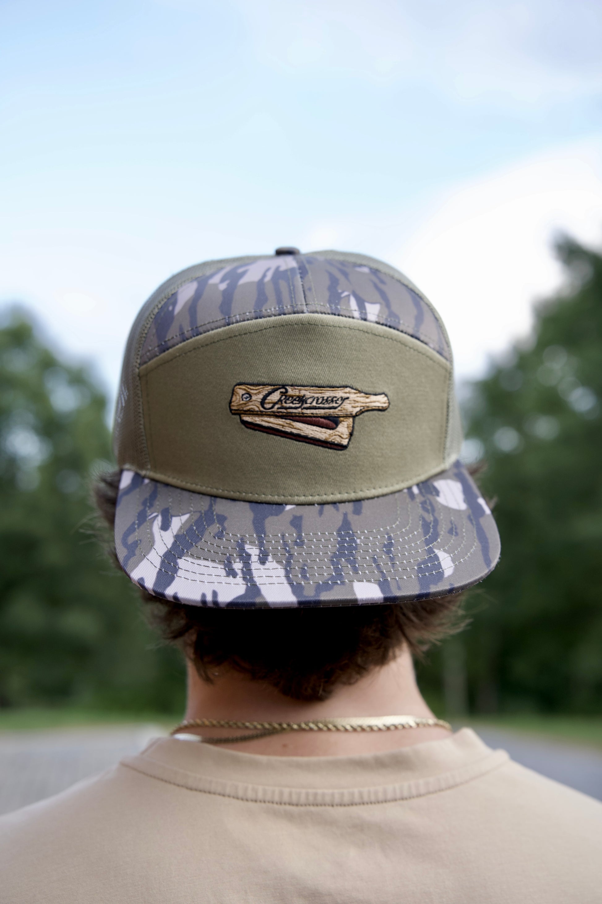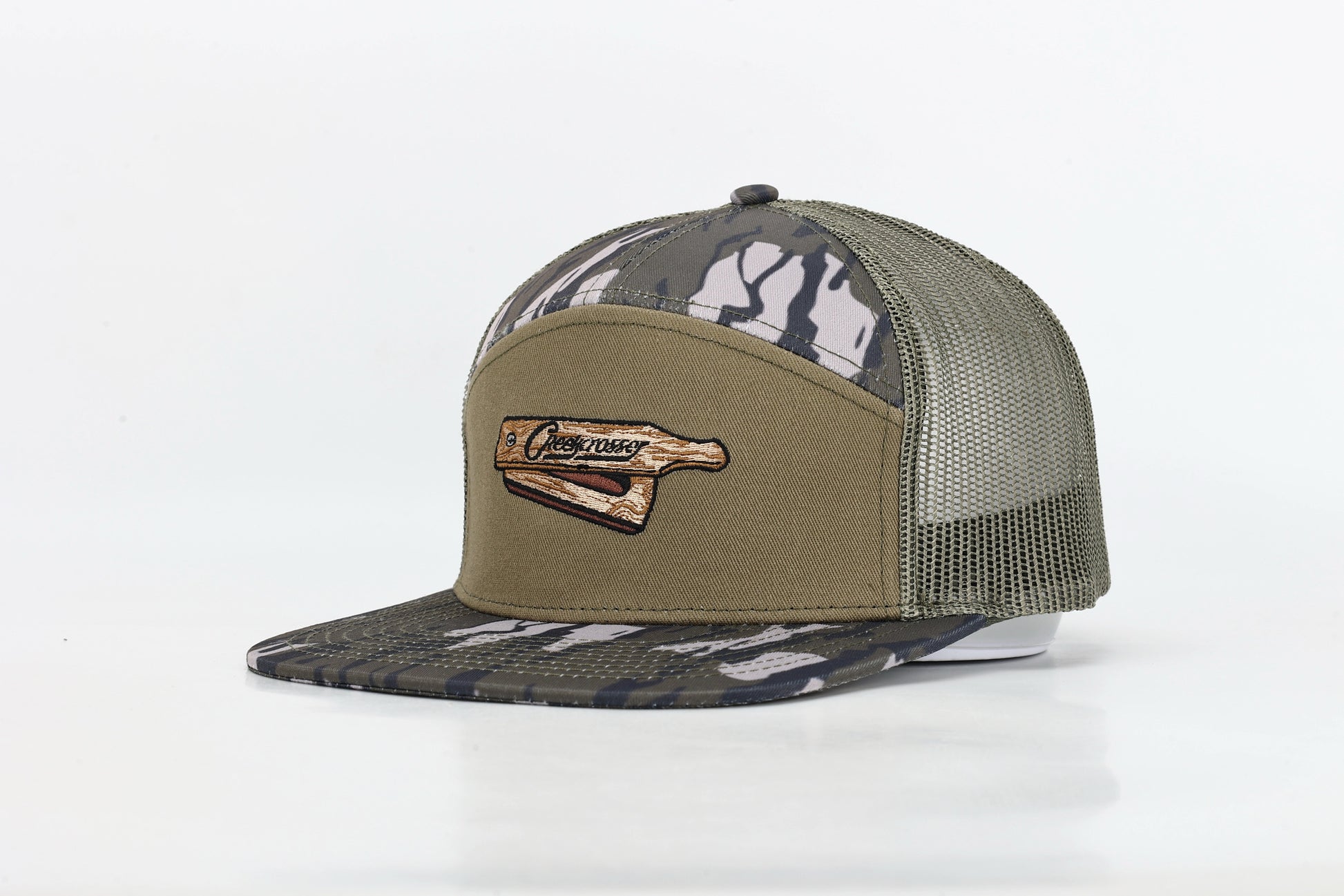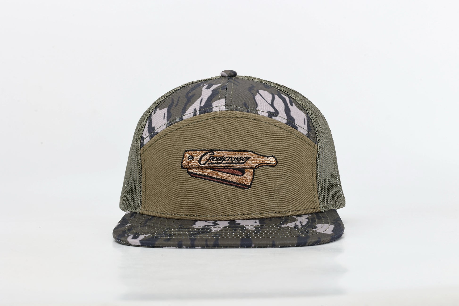 Bring the hunt with you wherever you go. The CreekCrosser Turkey Call 7-panel hat is designed for outdoorsmen who live and breathe the call of the wild. Featuring a clean, structured fit with breathable mesh backing, this cap keeps you comfortable in the blind, on the farm, or out in town. The front showcases our bold CreekCrosser branding alongside a turkey call graphic paying tribute to the tradition of spring mornings in the woods.